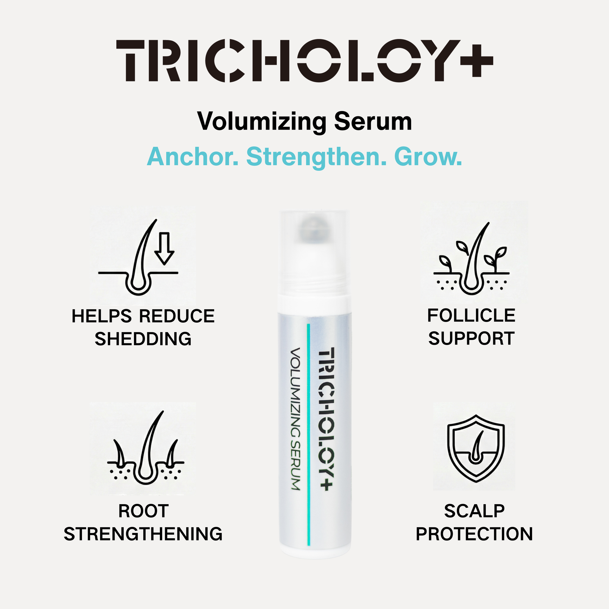 Coming soon: TRICHOLOY+ Root Renewal Serum, a lightweight, nutrient-rich scalp treatment designed to support healthier hair from the root up. Developed with the same science-backed approach as our Volumizing Shampoo, this oil will help: